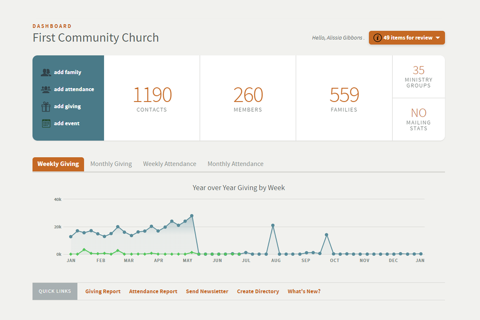 See attendance numbers to get a sense of how well attended your Sunday services and events are so you can respond and adapt quickly.